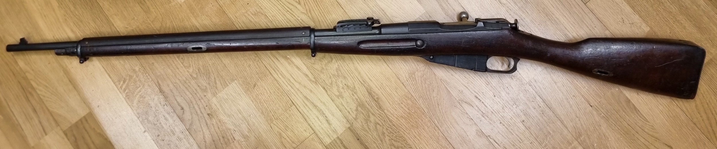 Kivääri, lippaallinen kertatuli. Tikkakoski M1891 1926 C-sarja 7,62x53R. Lukko samalla numerolla.