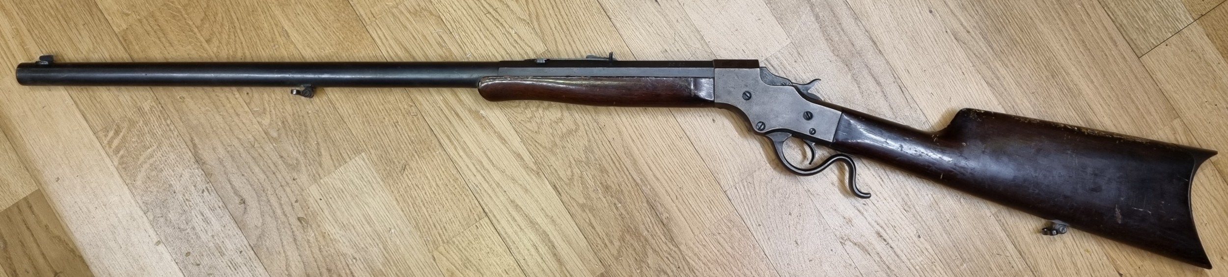 Kivääri, kertatuli. Stevens Mod 44 .25-20 Single Shot. Patenttivuosi 1894.